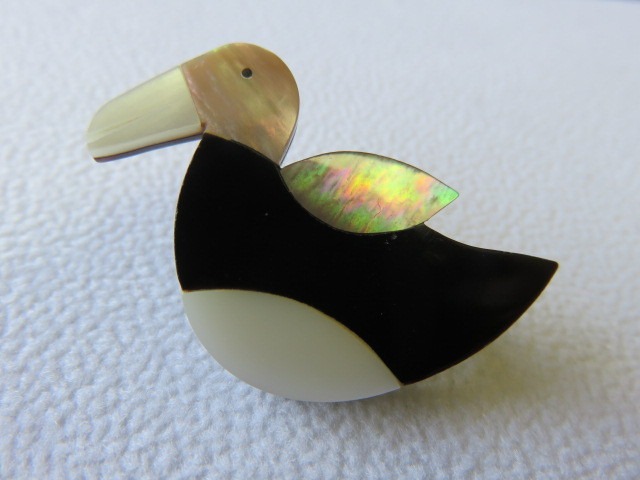 宝飾品 アクセサリー 白蝶貝 モザイクデザイン 水鳥のシェルブローチ Bタイプ 貝殻 鴨 カモ かも