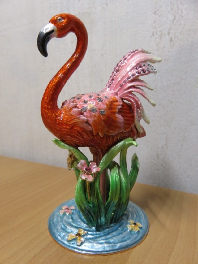 宝石箱 ジュエリーケース ○フラミンゴ(レッド×ピンク) サイズ:高さ110mm 重さ:285g(外箱含む) ※サンプル展示品です。 気になる点がございましたら、お問い合わせ下さい。