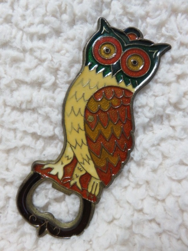 中古品 骨董品 アンティーク品 七宝焼き 開運 ふくろう みみずく キッチン 栓抜き ボトルオープナー