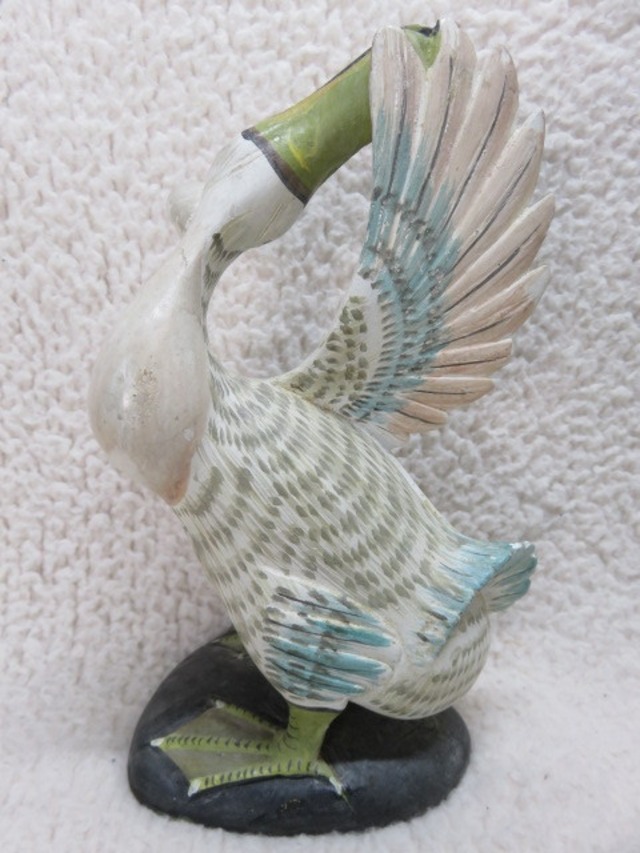 中古品 骨董品 古い彫刻品 バードカービング コブハクチョウ 木製 置物 オブジェクト 水鳥 白鳥 ガチョウ